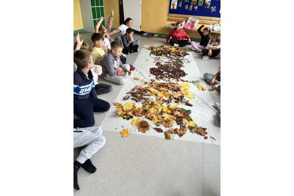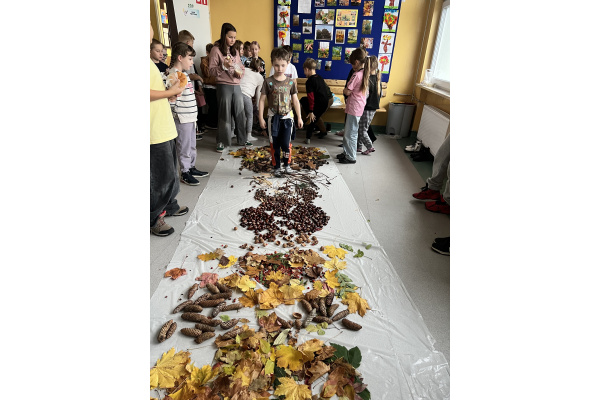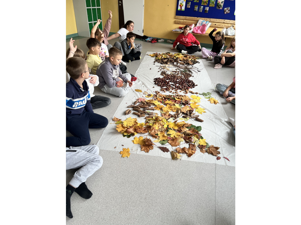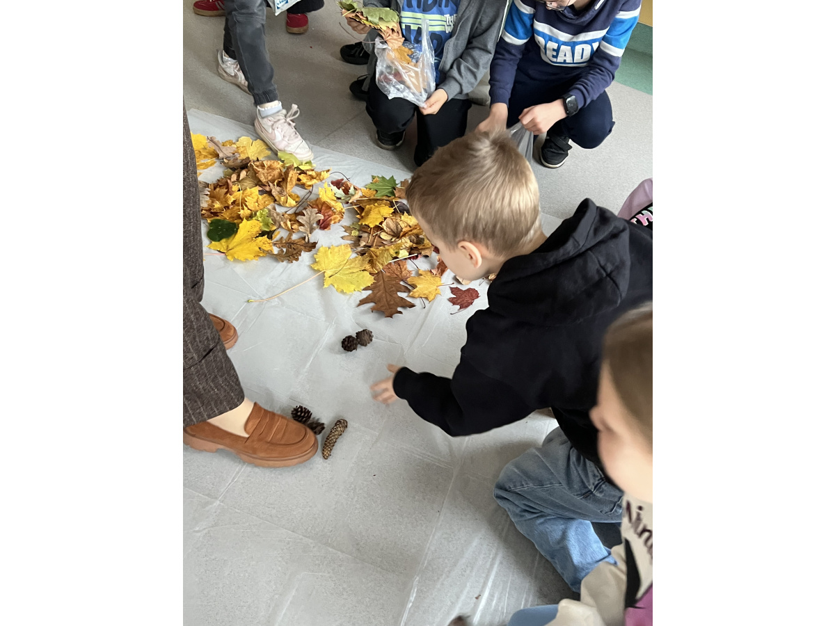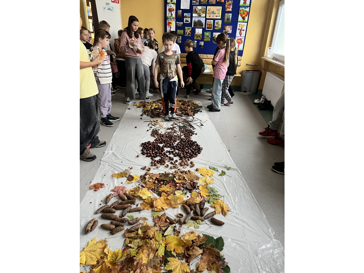 Dzisiaj klasa 3a dla ramach ogólnopolskiego projektu „Gramy zmysłami” zamieniła szkolny korytarz w prawdziwy jesienny park.Uczniowie z ogromnym zaangażowaniem tworzyli ścieżkę sensoryczną z naturalnych materiałów - liści, szyszek, kasztanów, żołędzi, gałązek, orzechów i jarzębiny. To była fantastyczna zabawa połączona z nauką - dzieci mogły rozwijać zmysły, poznawać różne faktury i współpracować w grupie. Z przygotowanej ścieżki korzystali także uczniowie klas 2 i 3, którzy z wielką radością przeszli po jesiennych skarbach natury. Jesień naprawdę potrafi inspirować!