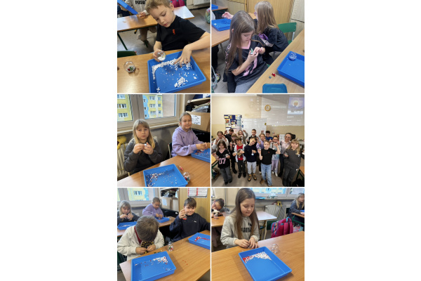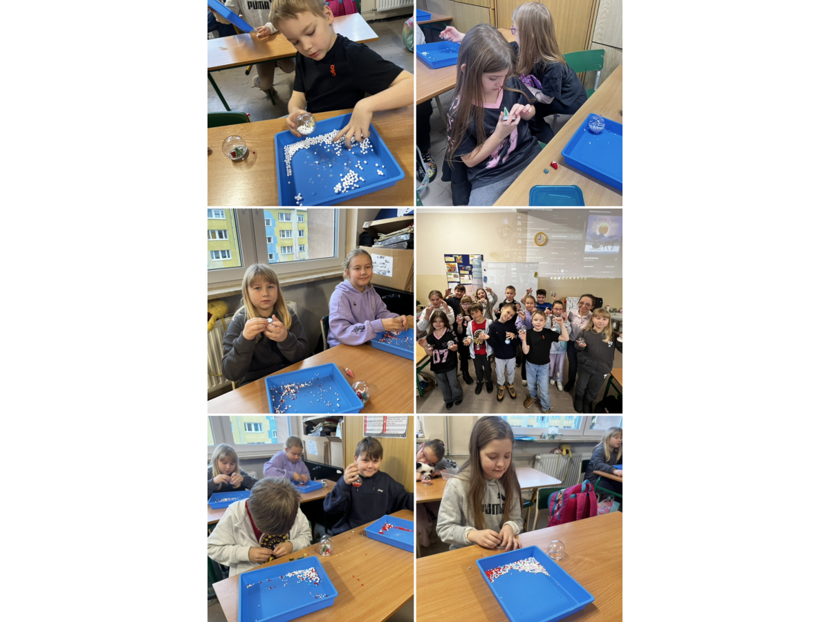 Dzieci z klasy 3a miały wyjątkowe zajęcia w ramach projektu „Gramy zmysłami”, podczas których poznały tajniki zmysłu wzroku. Na początku obejrzeliśmy ciekawy film edukacyjny, który pomógł nam zrozumieć, jak działa nasz wzrok, jak odbieramy kolory i światło oraz dlaczego wzrok jest tak ważny w codziennym życiu. Po solidnej dawce wiedzy przeszliśmy do pracy praktycznej i z wielkim zaangażowaniem wykonali świąteczne bombki i mini kule śnieżne. Każda dekoracja powstała z ogromną starannością i pomysłowością. Powstawły prawdziwe zimowe dzieła sztuki! Nie zabrakło też naukowej interakcji. Dzieci mogły z bliska zobaczyć, jak działa kula plazmowa! Obserwowały świetlne wyładowania, reakcje na dotyk i świetnie się bawiły, łącząc zabawę z nauką. To były zajęcia pełne kreatywności, ciekawostek i uśmiechów.