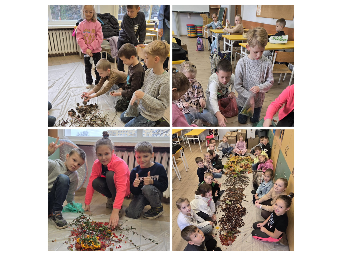 Tym razem klasa 1b przeniosła się w prawdziwy jesienny świat pełen kolorów i niezwykłych faktur. Dzieci z ogromnym zaangażowaniem tworzyły swoją ścieżkę sensoryczną, wykorzystując dary jesieni. Najwięcej radości przyniosło oczywiście przechodzenie po ścieżce. Było mnóstwo śmiechu, zdziwienia i zachwytu!